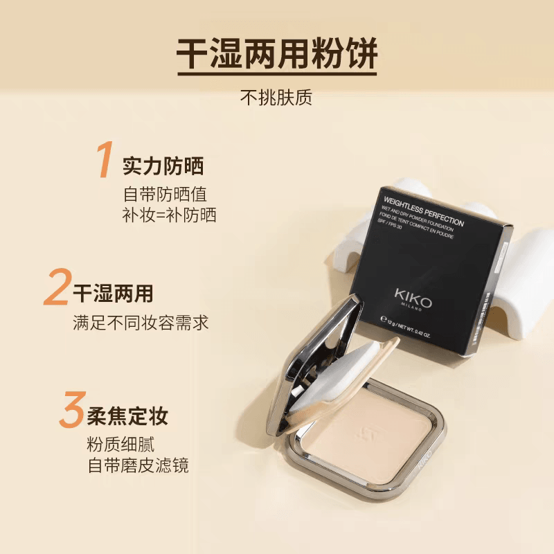 Kiko Weightless Perfection Powder Foundation KIKO防晒粉饼干湿两用遮瑕控油持久散粉
