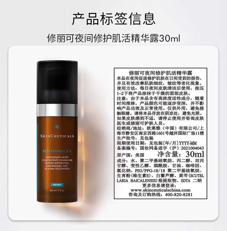 SKINCEUTICALS RBE Overnight Antioxidant Serum 30ml修丽可 RBE夜间修护肌活精华露30ml【熬夜党必备】